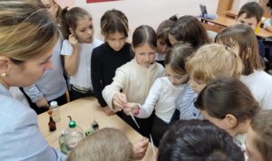 Во 2-х классах нашей школы в рамках Областной недели Труда и профориентации прошел классный час.Педагог ГАПОУ СО «ННХТ», Козырева Яна Игоревна, вместе со студентами своей группы познакомила обучающихся со специальностями техникума. Ребята попробовали себя в качестве лаборантов, принимая участие в химических опытах «Светофор».